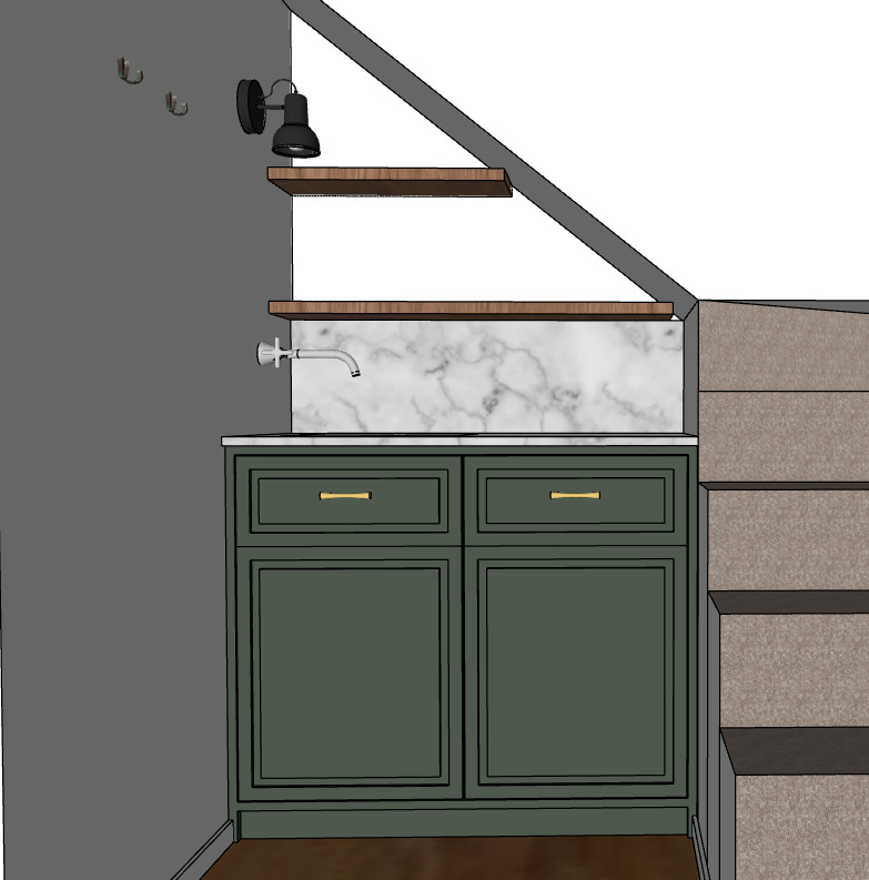 A copa tem aproximadamente 1 metro de largura. É um “projeto” de copa, então pensei com cuidado como otimizar esse espaço para atender minha necessidade. Qual era?